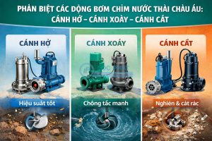 Phân biệt các dòng bơm chìm nước thải Châu Âu: cánh hở, cánh xoáy, cánh cắt