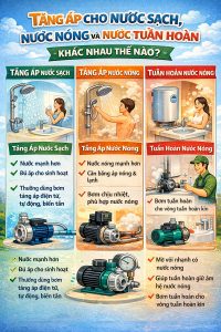 Tăng áp cho nước sạch, nước nóng và nước tuần hoàn khác nhau thế nào?